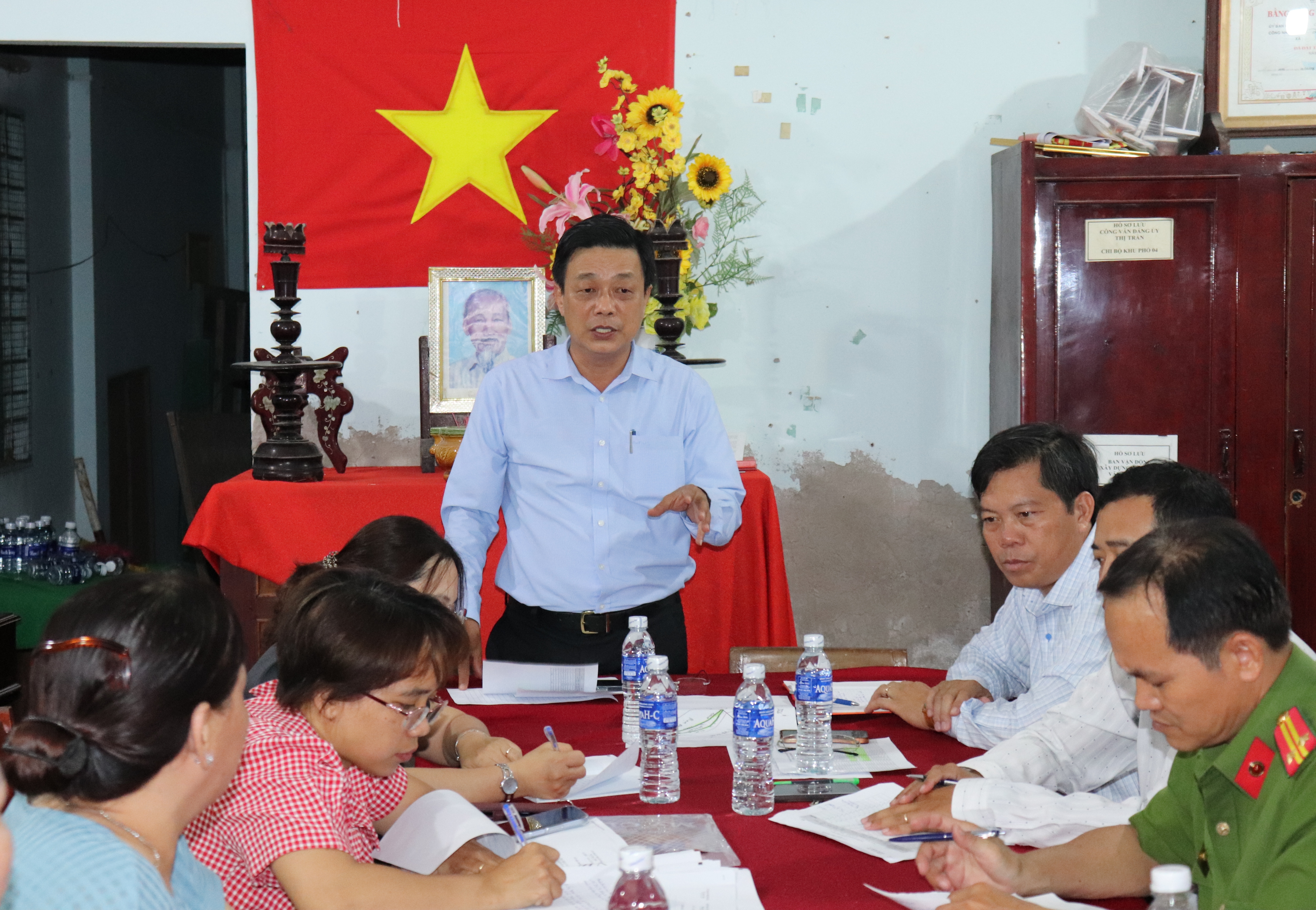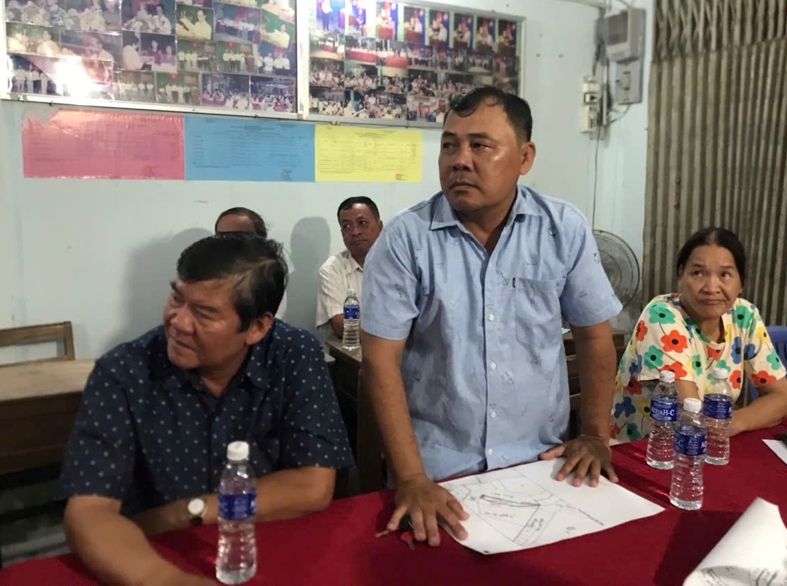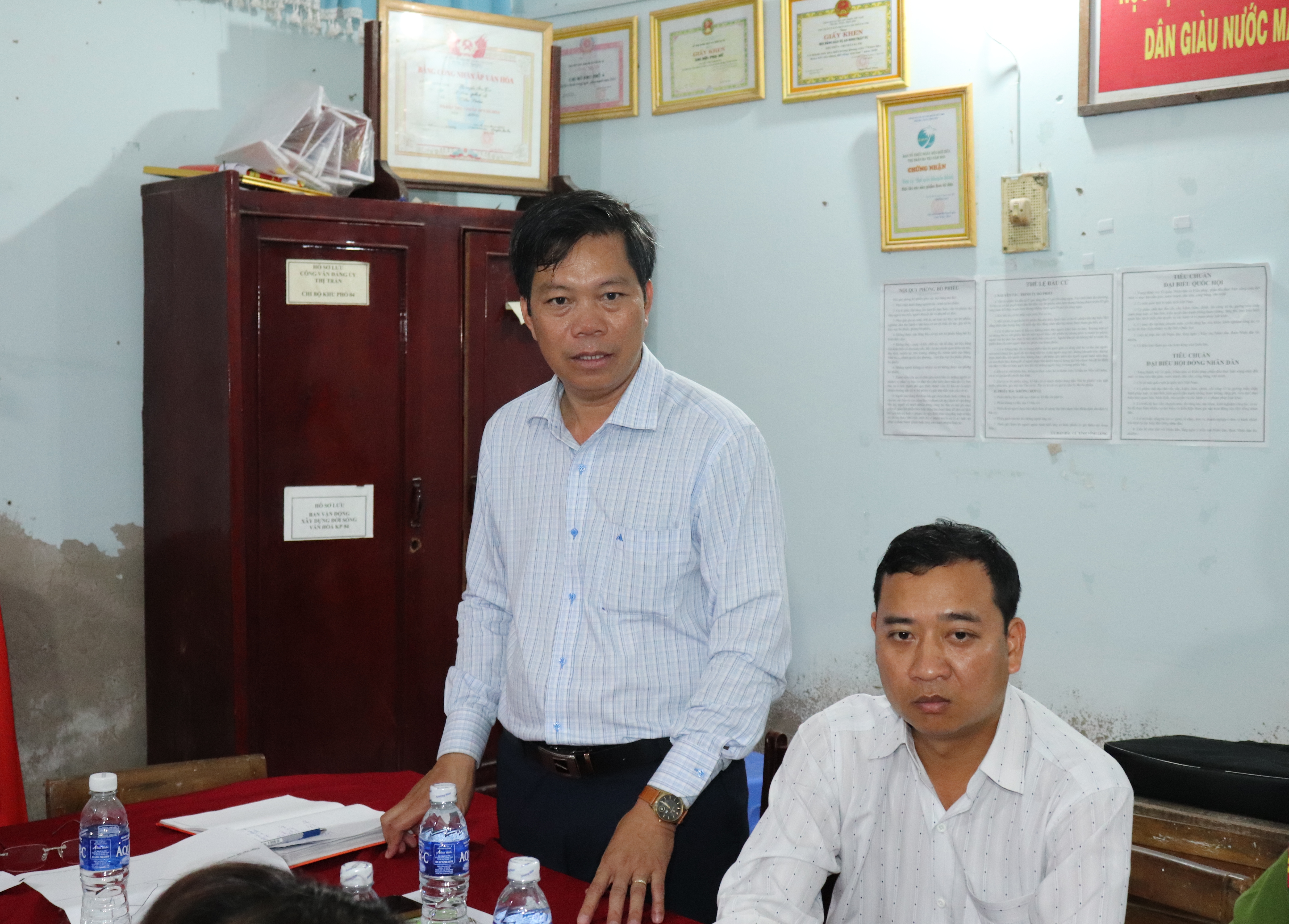 Đồng chí Phạm Văn Dũng - Chủ tịch UBND xã trình bày phương án xây dựng bến bãi vựa cá mới trong Cụm công nghiệp Thị trấn - An Đức